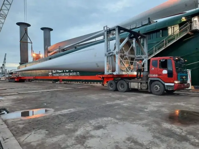 Offshore Wind Project Support: Transporting blades to port facilities for onward shipment to offshore wind farm installation vessels.