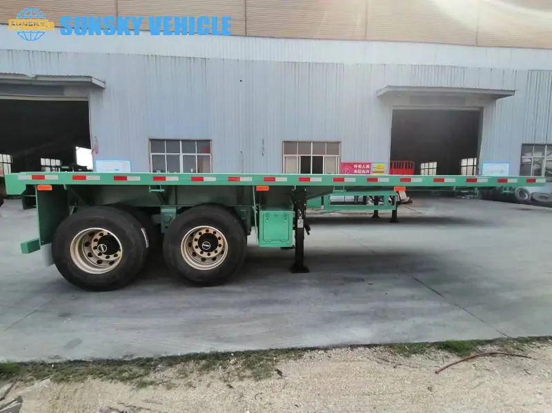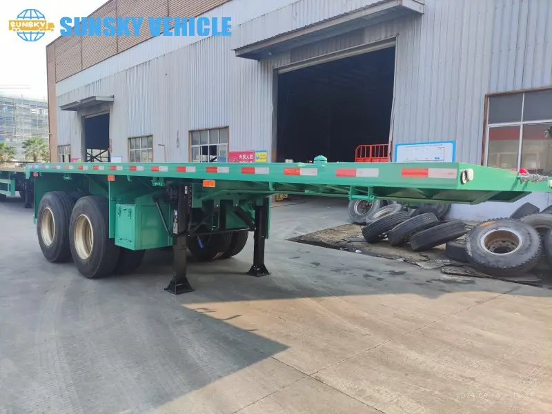 Our 20ft flatbed semi trailer is meticulously engineered for the demanding task of transporting a single 20ft container. With a robust design, high-strength steel frame, and a lightweight tare weight, it delivers outstanding performance and durability on any road.