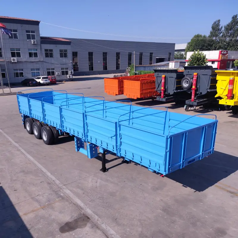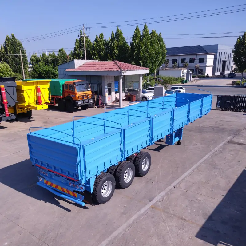 A drop side trailer, also known as a side wall trailer or sideboard semi-trailer, is a type of semi-trailer characterized by its removable or collapsible side panels. The primary difference from a standard flatbed is its enhanced versatility. While a flatbed trailer is only suitable for carrying large, single items that can be strapped down, a drop-side trailer can easily be converted. With the side walls and tailgate in place, it can securely transport bulk cargo like bags of cement, grain, or sand. By dropping or removing the side walls, it transforms into a flatbed trailer, allowing for the easy loading and transport of oversized goods and equipment from the side. This versatility makes the drop side semi-trailer a highly adaptable asset for a wide range of industries.