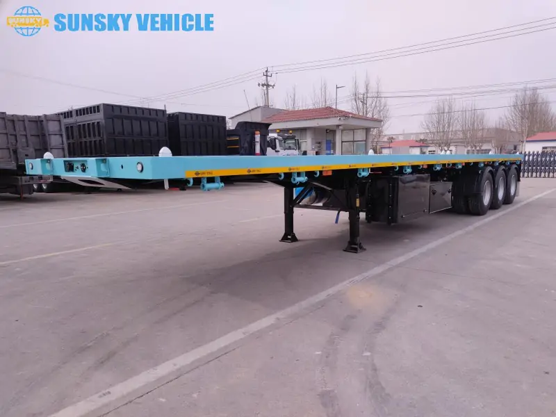 Seeking a reliable flatbed trailer for sale? Our 40FT flatbed semi-trailer is engineered with heavy-duty, high-strength steels and offers an impressive 50,000 kg payload. Equipped with advanced safety features, it’s the perfect solution for transporting containers and bulk cargo with confidence.