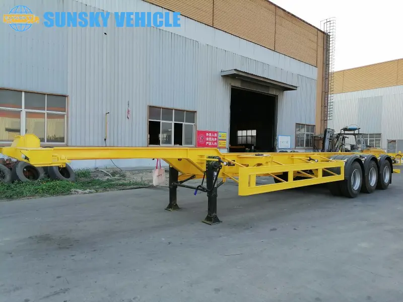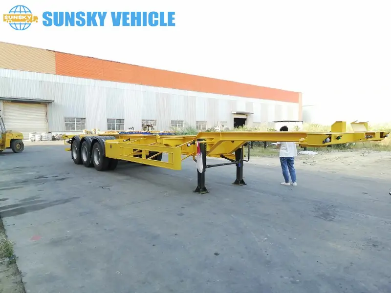 Skeletal trailers, and the broader category of container chassis, are engineered with a versatile design to handle a range of ISO container sizes. A standard 40ft skeletal trailer will have twist locks placed to secure a single 40ft container. However, these trailers often have additional twist lock positions located in the middle of the frame to accommodate a single 20ft container. For transporting two 20ft containers, some container skeletal trailers are designed with multiple sets of locks to securely hold both. For longer 45ft containers, there are specialized extendable skeletal trailers that can be mechanically lengthened to the required size and then retracted for better maneuverability when hauling shorter containers or when empty. This adaptability ensures that a single type of container transport trailer can serve a variety of logistical needs, making it a highly flexible asset for any fleet involved in container hauling.