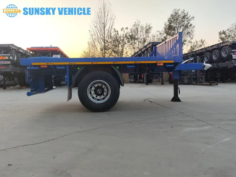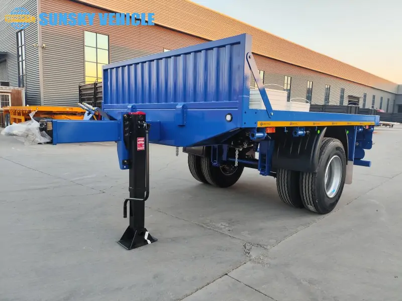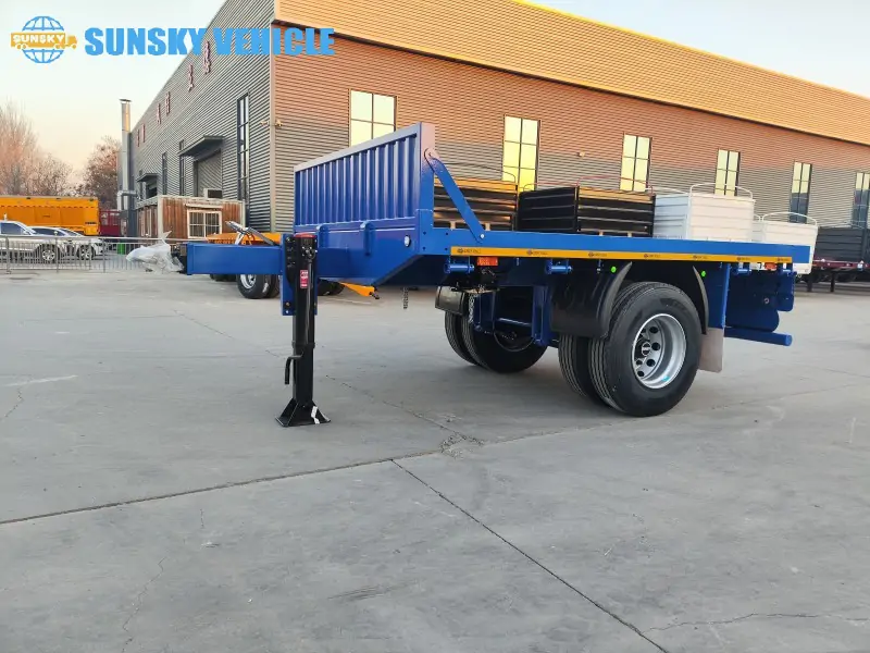 Crafted from high-grade steel and engineered for longevity, our pup trailers stand up to the toughest jobs. With a generous payload of 10,000 kg, these trailers are built to perform. The single 13-ton axle and resilient spring suspension provide excellent stability, while the two-speed manual landing gear ensures easy and secure parking. A sturdy hook on the front allows for seamless connection, and the 600mm head wall height keeps your cargo secure during transport. We pay attention to every detail, from the durable 12R22.5 tires and 9.00*22.5 rims to the robust structural design that minimizes maintenance needs.