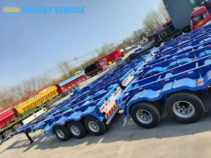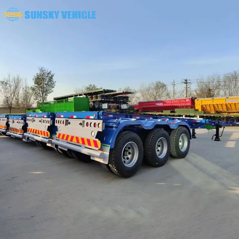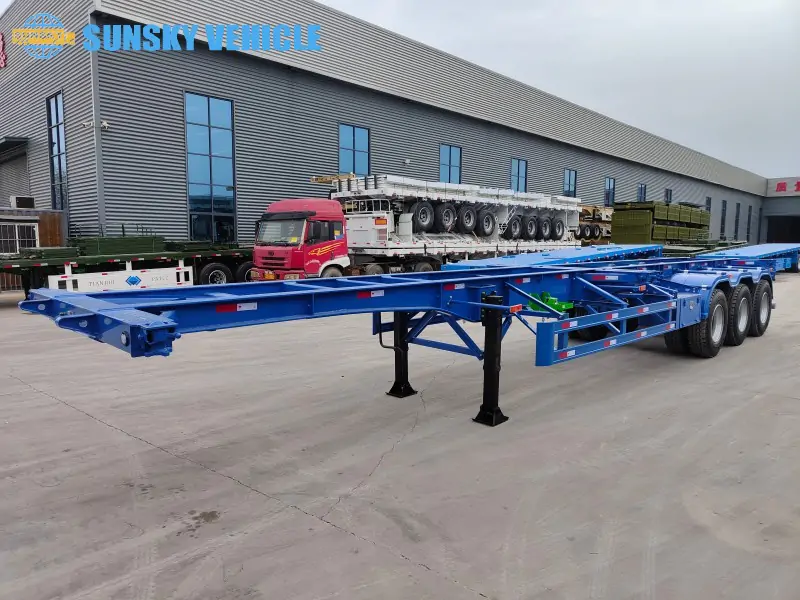 Skeletal trailers, and the broader category of container chassis, are engineered with a versatile design to handle a range of ISO container sizes. A standard 40ft skeletal trailer will have twist locks placed to secure a single 40ft container. However, these trailers often have additional twist lock positions located in the middle of the frame to accommodate a single 20ft container. For transporting two 20ft containers, some container skeletal trailers are designed with multiple sets of locks to securely hold both. For longer 45ft containers, there are specialized extendable skeletal trailers that can be mechanically lengthened to the required size and then retracted for better maneuverability when hauling shorter containers or when empty. This adaptability ensures that a single type of container transport trailer can serve a variety of logistical needs, making it a highly flexible asset for any fleet involved in container hauling.
