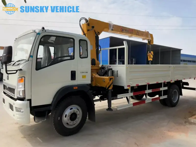 Our SINOTRUK HOWO truck mounted crane combines the power of a reliable cargo truck with the versatility of a crane.Designed for efficient lifting and seamless transport, this vehicle is your all-in-one solution for construction sites, logistics, and heavy-duty material handling. With a maximum lifting weight of 3.2 tons and a lifting height of 10.6 meters, it’s built to handle your toughest jobs.
